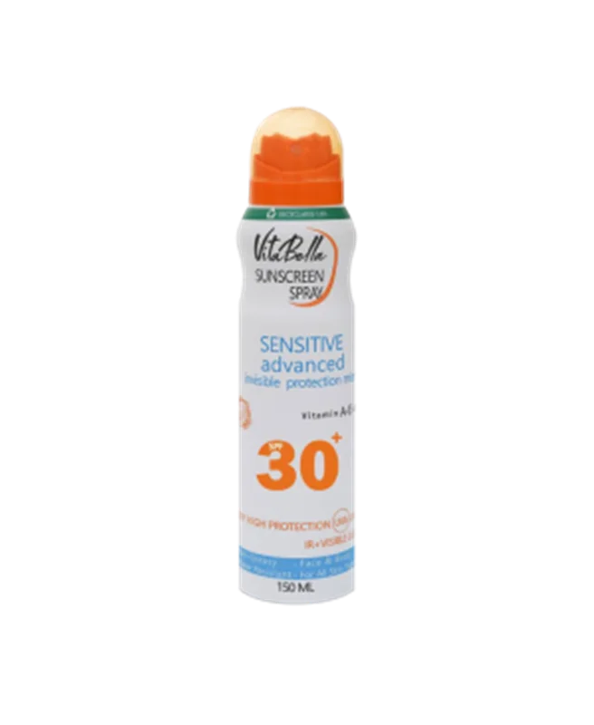 * ویژگیهای اسپری ضد آفتاب ویتابلا spf 30: حاوی ویتامین ای با خاصیت ضد پیری،ضد تخریب پوست، کاهش رادیکالهای آزاد/ حاوی ویتامین سی با خاصیت افزایش کلاژن سازی پوست، مقابله با مضرات رادیکالهای آزاد/ حاوی ویتمین آ با خاصیت محافظت در برابر اشعه یو وی_ یو وی بی _آی آر و نور مرئی/ محافظت در برابر آفتاب سوختگی و لکه های قهوه ای ناشی آز آن/ درخشان کننده پوست با کاهش تولید ملانین/ بدون رنگ/ مناسب انواع پوست صورت و بدن، خصوصا پوست حساس/ فاقد چربی و روغن/ بدون ایجاد چسبندگی روی پوست/ ضد آب و تعریق/ قابلیت جذب سریع. * نحوه مصرف اسپری ضد آفتاب ویتابلا اس پی اف ۳۰: نیم ساعت قبل از قرار گیری در معرض نور خورشید در روی پوست تمیز و بدون آرایش با قاصله ۱۵ سانتی متر روی پوست اسپری شود. هر دو ساعت یکبار تمدید شود. در محیط دارای تهویه استفاده شود.